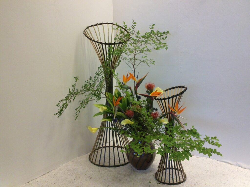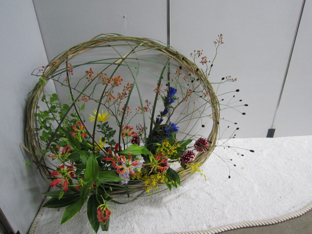 展示・イベントを彩る西産装美オリジナルの花装飾。彩り豊かな花々と個性的なアレンジメントで空間を華やかに演出します。